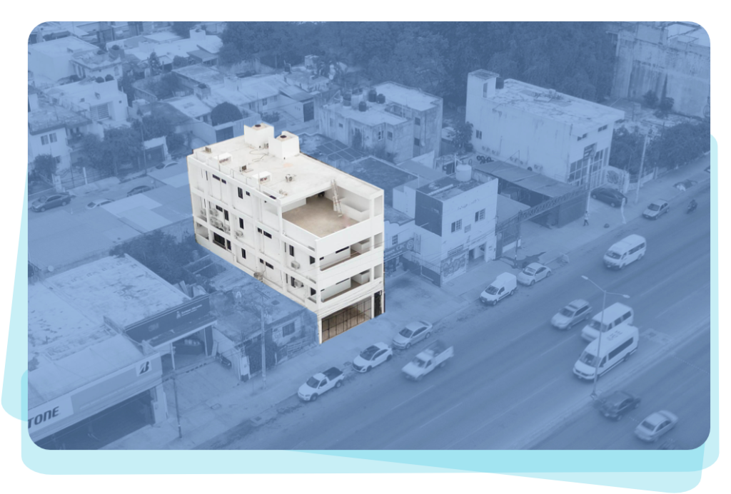 El edificio integra 8 departamentos (2 estudios, 5 de una habitación y 1 de dos habitaciones) y un amplio local comercial en planta baja, lo que permite generar ingresos simultáneos por renta vacacional, renta tradicional y negocio comercial.