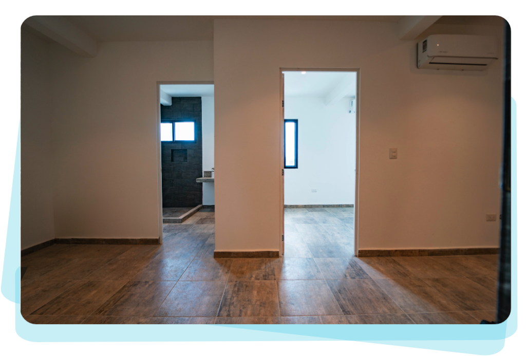 Cada unidad cuenta con barra con parrilla eléctrica, baño completo, boiler, aire acondicionado y ventiladores, por lo que está listo para amueblar y comenzar a rentar sin grandes adaptaciones.